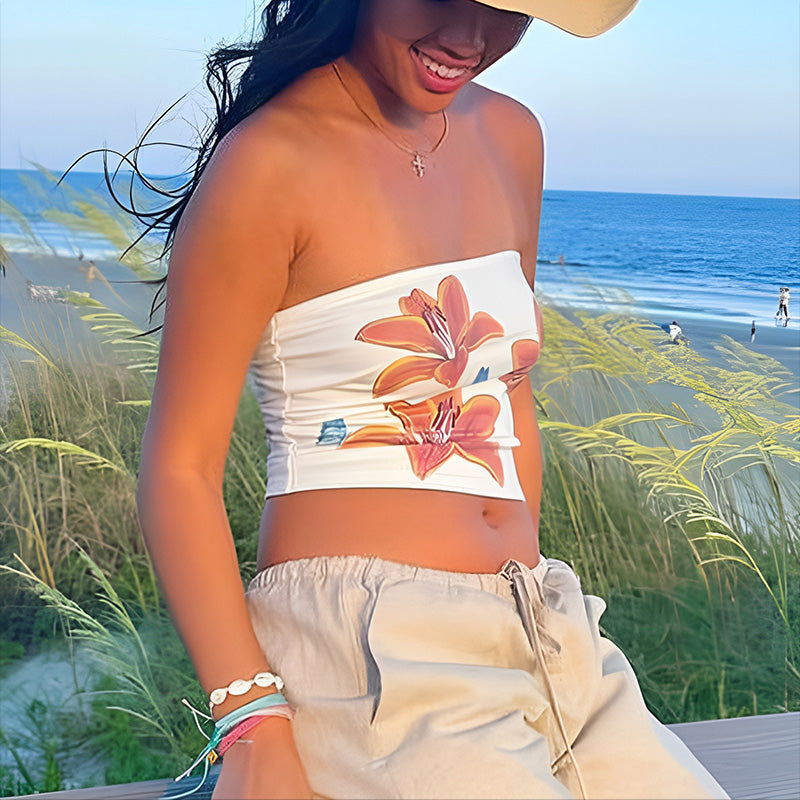 Elevate your summer wardrobe with our Women's Summer Beach Sleeveless Bandeau, the perfect blend of style and comfort for those sunny days by the shore. Adorned with a charming floral pattern, this bandeau is designed to keep you cool, stylish, and confident as you soak up the sun.