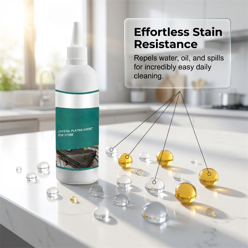 NANO-CRYSTAL COATING - Forms a durable, crystal-clear protective layer on your stone surfaces. This safeguards them from daily stains, water spots, and oil, making cleanup effortless and keeping them looking pristine.