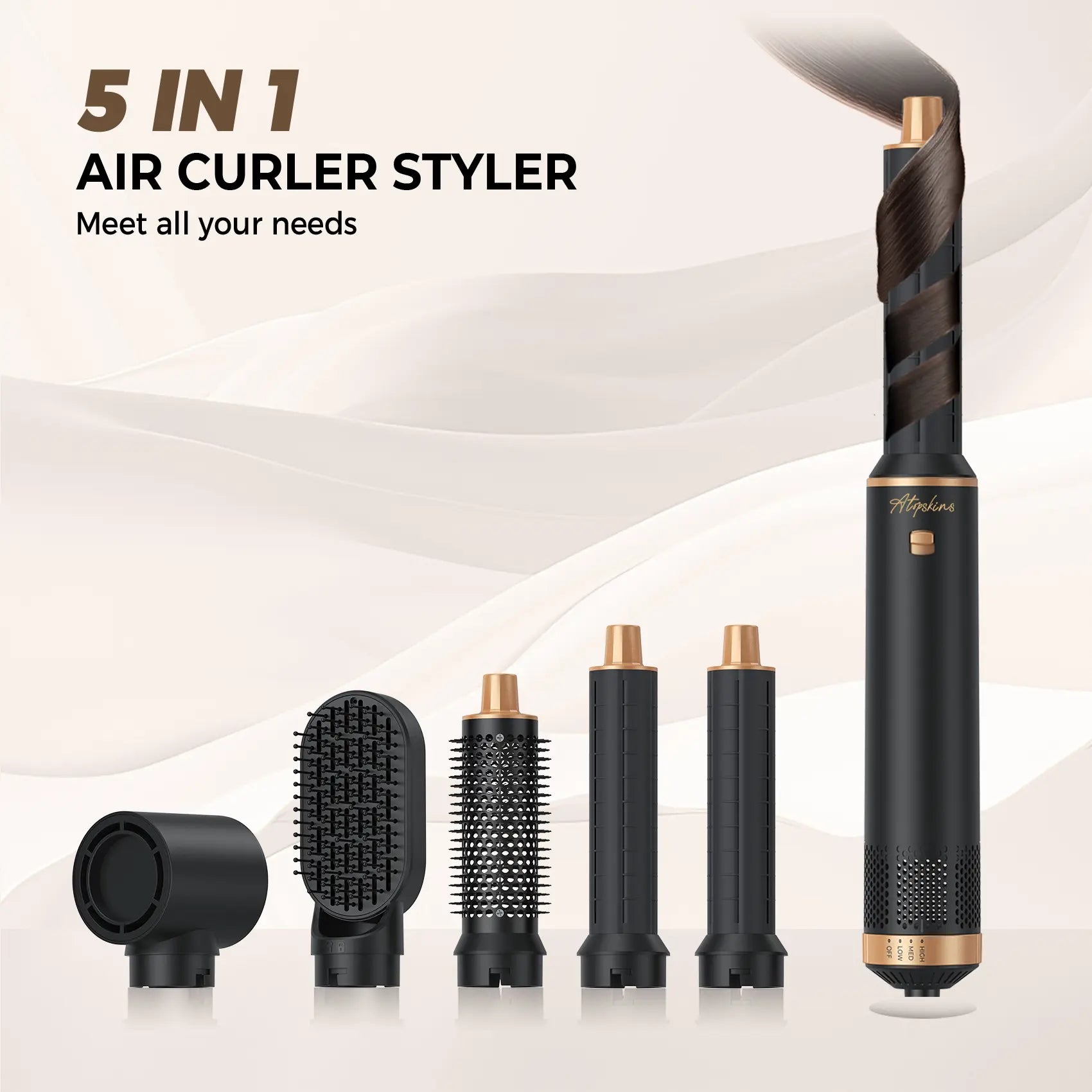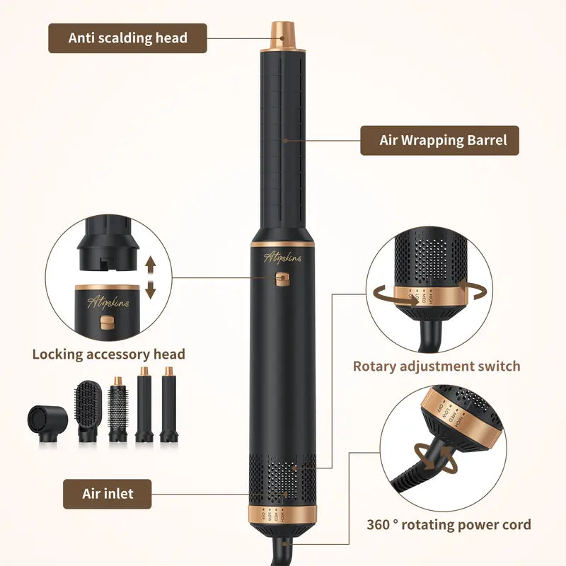 Package Includes: 1×5-in-1 Multi-Functional Hair Dryer & Curler