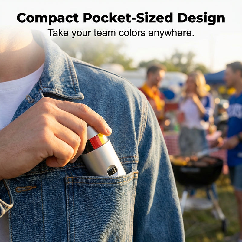 COMPACT POCKET-SIZED DESIGN - The sleek, lightweight cylindrical design fits perfectly in your pocket, purse, or backpack. Bring it to tailgates, stadiums, or viewing parties with absolute ease.