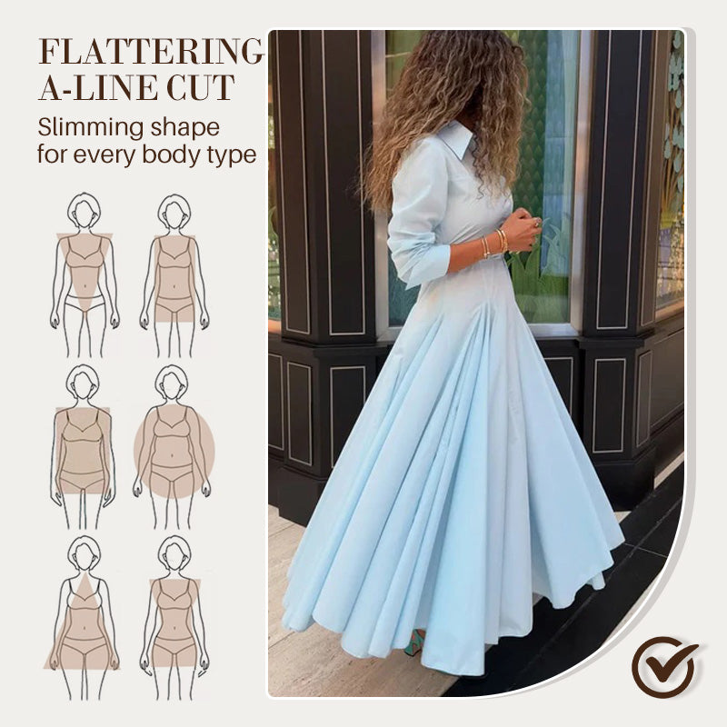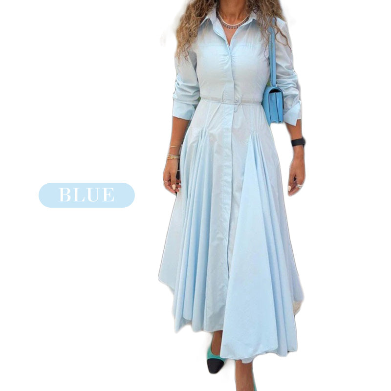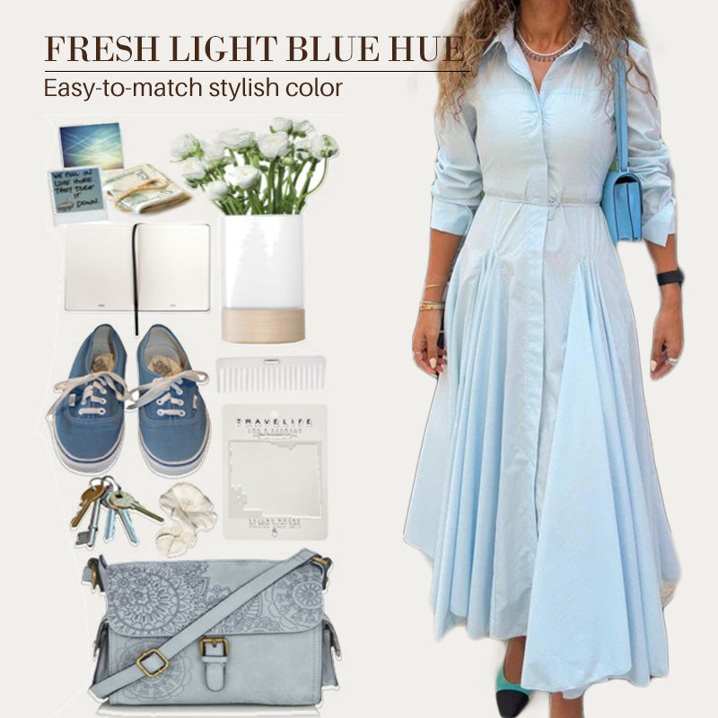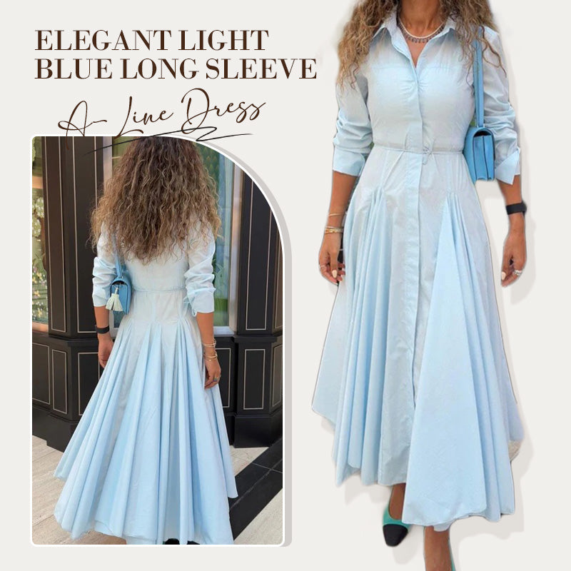 STRUCTURED COLLAR & BUTTONED FRONT: The structured collar and full front button placket bring a timeless, polished look to this light blue long dress. It adds sophistication while remaining easy to wear.