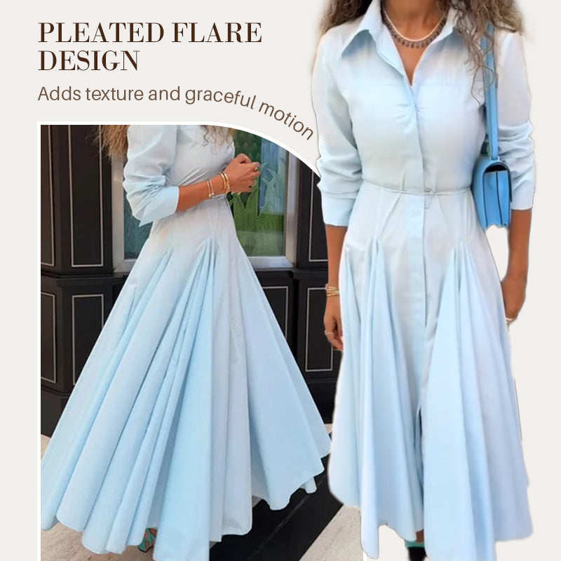 PLEATED FLARE DESIGN: The pleated flare design adds visual interest and dynamic flow to the dress. With every step, the texture catches light beautifully, enhancing femininity and grace while maintaining a neat, controlled shape.