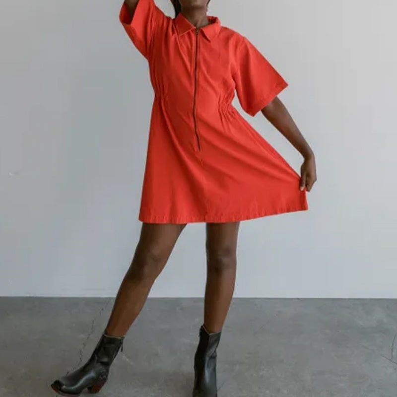 Package Includes: 1 * Women's Zipper Short Sleeve Dress with Pockets