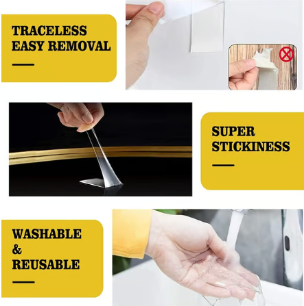 This Double-sided NANO Adhesive Anti-slip Sticky Tape Suits To Your Every Need.