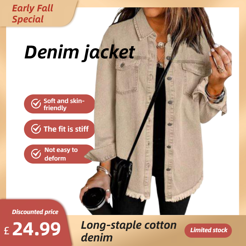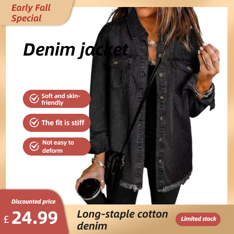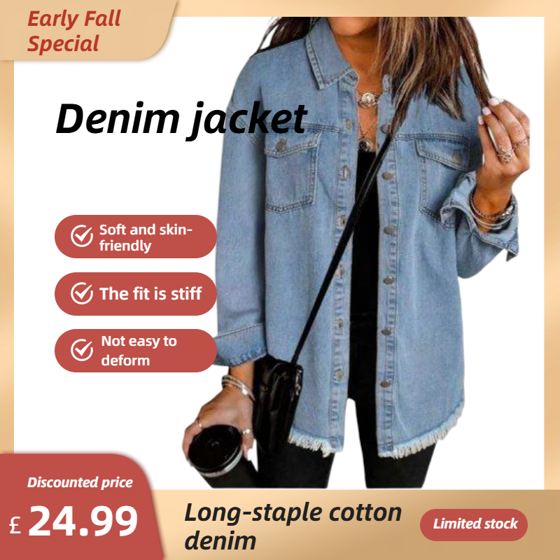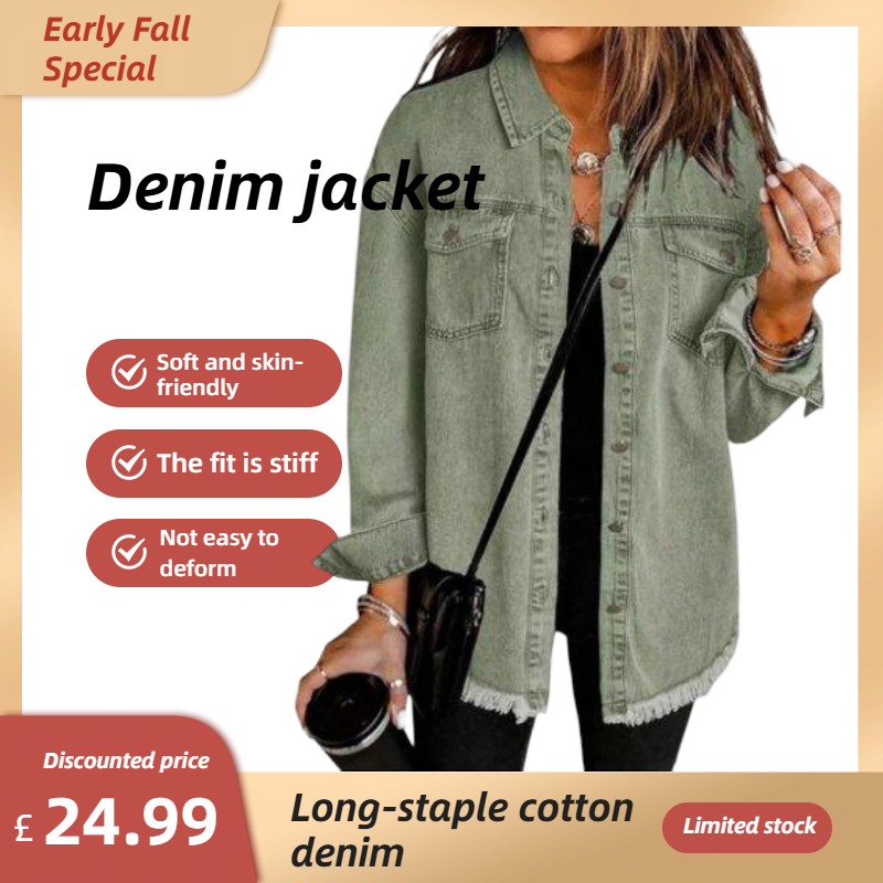 ✨Hot Sale 50% OFF🔥Oversized Fringe Denim Jean Jacket with Pocket