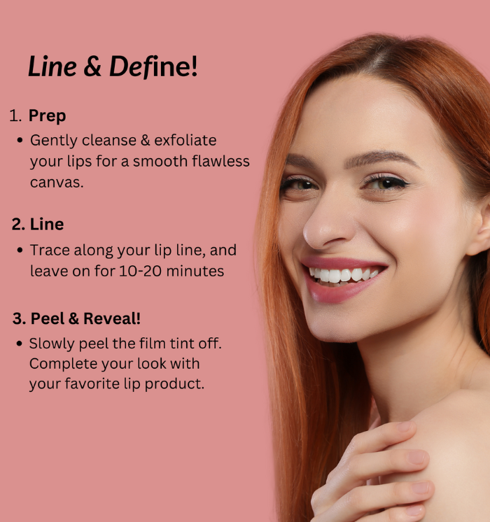 2️⃣ Using the precision-tip applicator, trace along the lip line in an even layer. Leave for up to 10-20 minutes. After the formula has been set, your fingers slowly peel the film tint off to unveil a smudge-proof, long-wear lip colour!