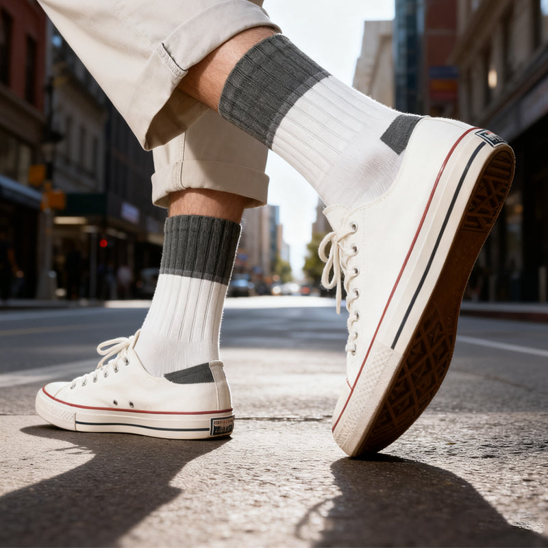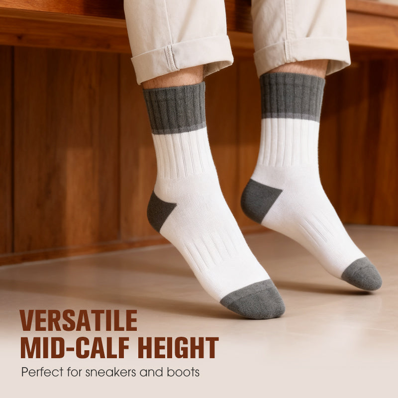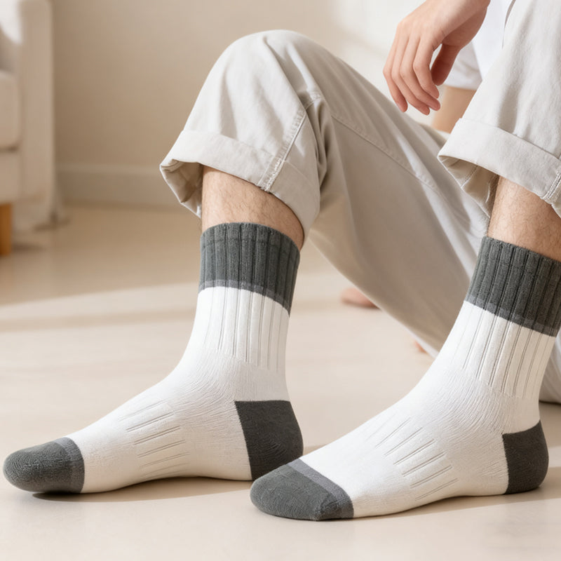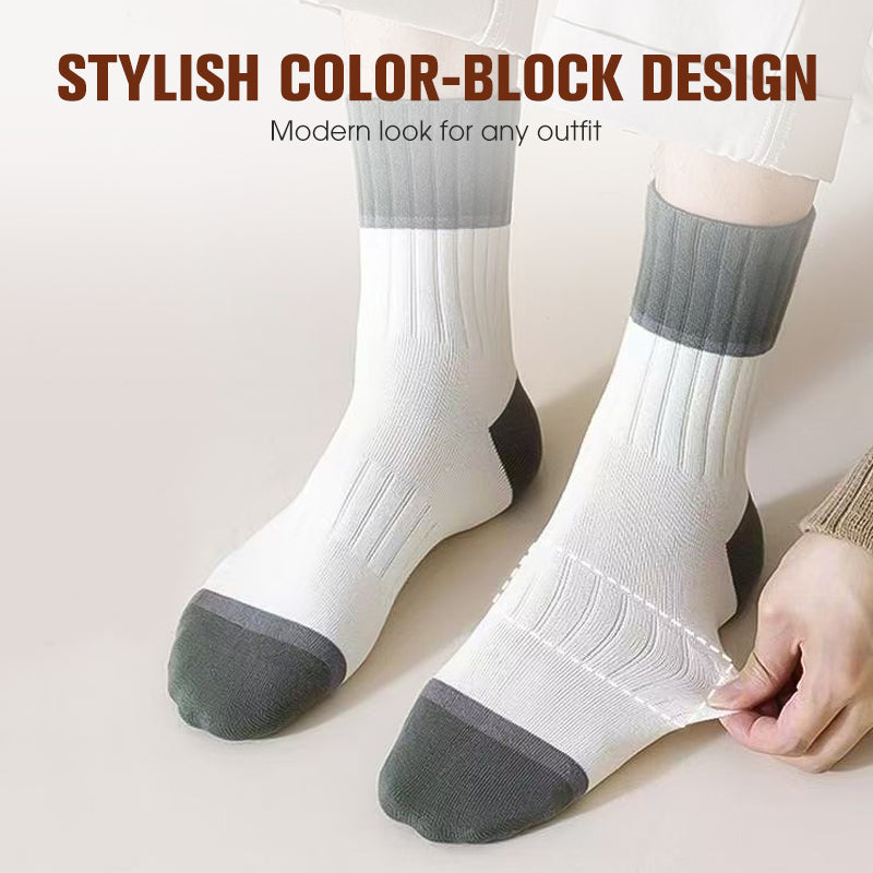 Пакетът включва: 1* мъжки цветни чорапи до средата на прасеца