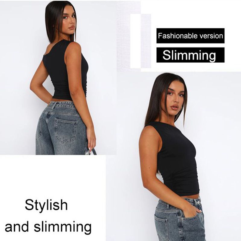 Crafted from soft and breathable fabric, this tank top features an alluring off-shoulder design that accentuates your feminine charm and adds a touch of sophistication to any outfit.