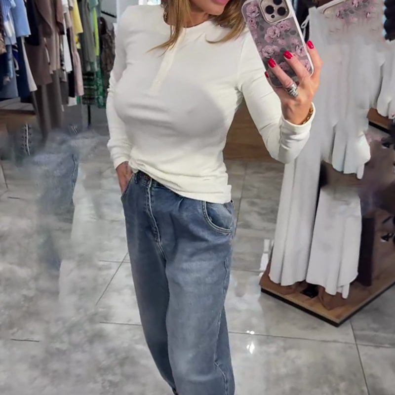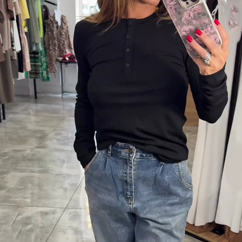 ✨Slim-Fit Button Top: Long-Sleeve, Tailored Fit, Effortless Chic Every Outing