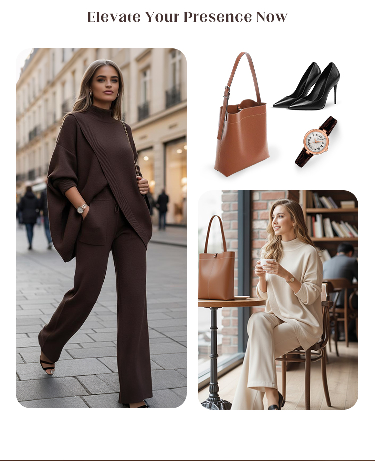 🎁Winter Hot Sale 50% OFF💝Women's 2-piece set – Asymmetrical sweater + Wide-Leg pants