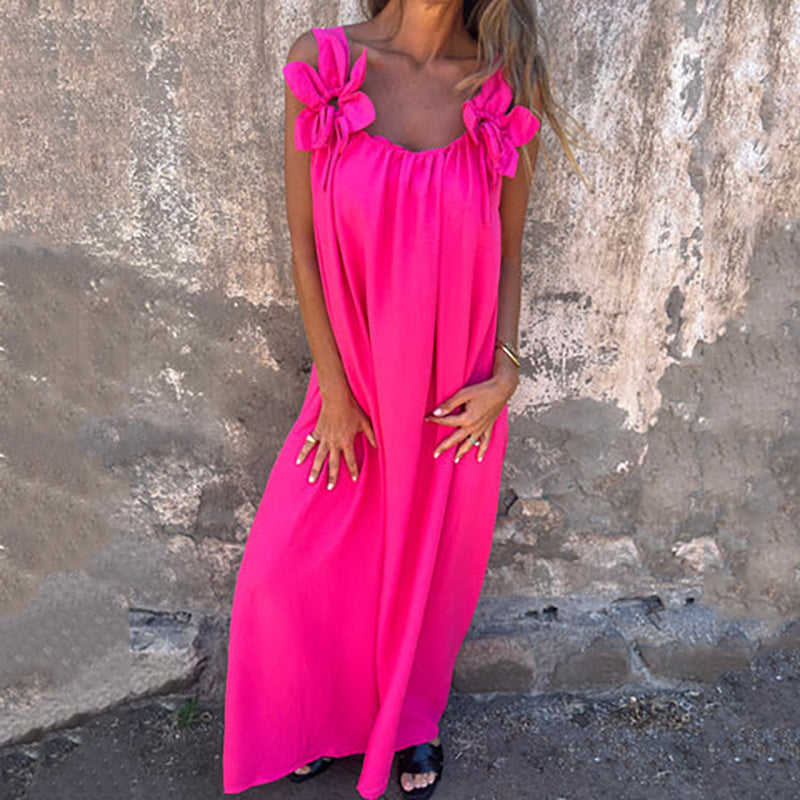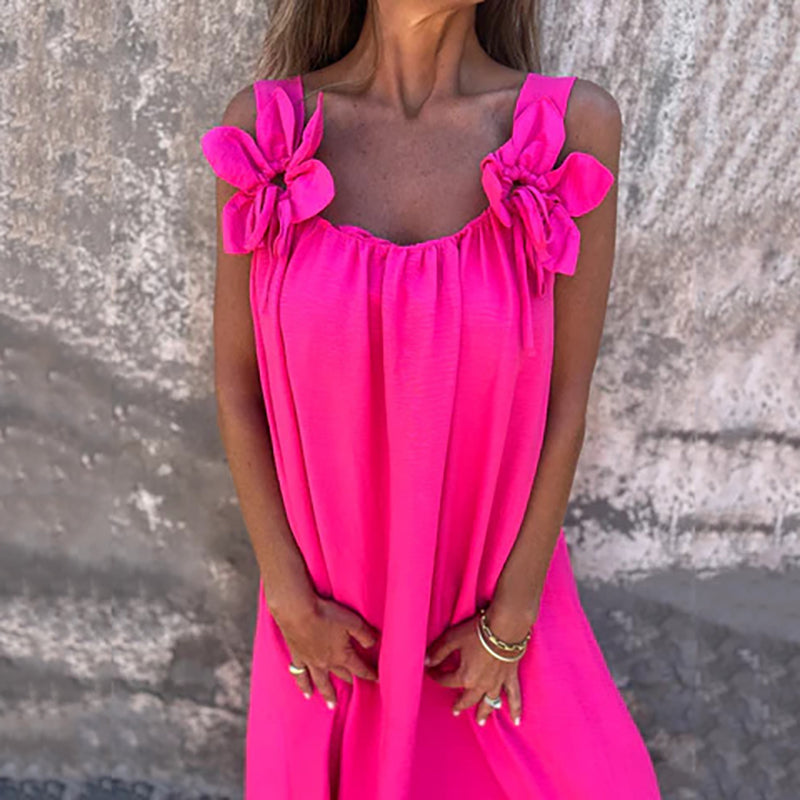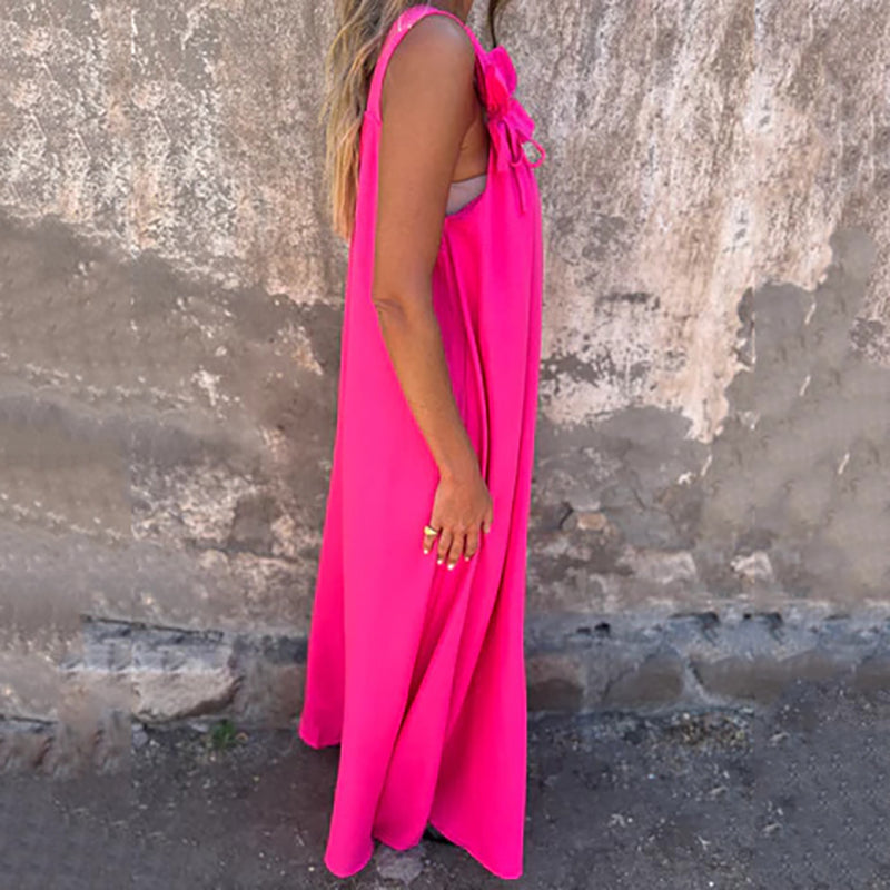 ROMANTIC FLORAL BOW STRAPS: This maxi dress combines elegance with playfulness, featuring carefully crafted flower-like bows that add a romantic touch.