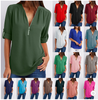 1*V-Neck Loose Chiffon 3/4 Sleeve Zipper Blouse
